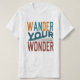 A t-shirt apresenta a frase "Wander Your Wonder" num monitor multicolorido vibrante. Cada palavra é uma cor diferente, criando uma sensação de exploração alegre. O próprio design é simples e desajeitado, deixando o texto multicolorido ficar palco central. Esta é uma camiseta perfeita para quem abraça a aventura e a busca da sua curiosidade única.