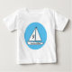 Camiseta de Convidado de Honra. Barco à vela branco em círculo azul para o aniversário do seu filho ou filha.