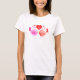Pintado, rosa e vermelho, a arte caprichosa ama pássaros prestes a beijar a camiseta das damas de pintura. Pintura original em aquarela e design por Sarah Trett.