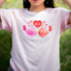 Pintado, rosa e vermelho, a arte caprichosa ama pássaros prestes a beijar a camiseta das damas de pintura. Personalize com suas próprias iniciais no grande coração vermelho. Ideal para mostrar seu amor em Dias de os namorados, noivados ou festas de galinha. Pintura original em aquarela e design por Sarah Trett.