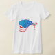 A camiseta de manga curta feminina é mostrada em branco com uma impressão de bandeira, esta camiseta macia é feita de materiais de qualidade e o artesanato está disponível em mais cores. Personalize o seu tamanho, cores, adicione imagens ao seu gosto ou comprar como está.