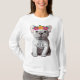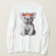 O Bulldog Francês, bonito, com um cachorro, canta como uma longa camiseta para ela. O cachorro bonito tem flores na cabeça. Obrigados para a Creative Fabrica para os elementos na design.