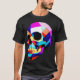colorida ilustración de calavera. Presenta un uso impresionante de patrones geométricos y colores vivos, lo que la convierte en un diseño audaz y llamativo. Los elementos angulares y abstractos le dan un toque moderno y artístico, ideal para hacer una declaración de moda destacada.