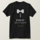 Esta camiseta divertida foi projetada como um presente ou um favor para o seu melhor homem. A t-shirt é preta e apresenta uma imagem de uma gravata branca e botões brancos. O texto diz "Melhor Homem" e tem um lugar para digitar seu nome, assim como o nome do casal de casamento e a data do casamento. Excelente a um saco de malas de casamento, e excelente maneira de obrigado o teu melhor homem por te defender.