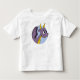 T-Shirt com ilustração da cabeça de um dragão voador roxo giro em círculo azul, conto de fadas / design de fantasia para crianças por Maxi Harmony