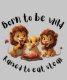Esta capuz de camisa apresenta um grupo de filhotes de leões giros sentados ao redor comendo bife com a citação "Nascer de ser selvagem, criada para comer bife." É um design perfeito para seus pequenos carnívoros.
