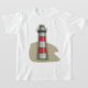 Um farol vermelho e branco listrado. Esta design parece realmente eficaz nesta camiseta