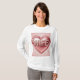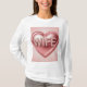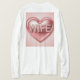 Esta t-shirt apresenta uma forma de coração cor-de-rosa metálico. A palavra WIFE está ali centrada com pequenas flores rosa bonito em cada letra. O fundo é um gradiente cor-de-rosa metálico refletindo um brilho suave. A camiseta é uma camiseta básica de manga branca comprida. A camisa é feita de 100% de algodão.