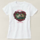 Camiseta feminina com um gato Maine Coon comendo dentro Cupido com rosas vermelhas com palavras que dizem Atenção à Má Cattitude. Trabalho de arte de Michaeline McDonald.