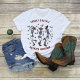 Halloween Spooky Suffle Assaltou Camiseta Hoedown. Prepare-se para botar a escotilha na estação assustadora com esta t-shirt do Dia das Bruxas Assombrada. Apresentando três esqueletos dançarinos decolados em chapéus e botas de cowboy, esta tenda captura a combinação perfeita do talento ocidental e da diversão do Halloween. Morcegos e aranhas rodeiam a cena, acrescentando um toque estranho. Personalize as palavras para fazer esta camisa festiva exclusivamente sua.