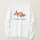 Esta é uma camiseta comprida com Dia de as Bruxas engraçado apresentando uma preguiça-bruxa-dormindo em uma vassoura voadora. Esta camiseta pode ser personalizada com seu próprio texto ou pode ser deixada como está.