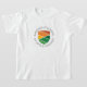 Rode o logotipo redondo nesta etiqueta com uma camiseta de manga menos comprida
