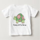 Uma tartaruga com margaridas rosa trabalhava nos azulejos de conchas. Sinta-se livre para adicionar o nome da sua garotinha também (mas esteja ciente de que colocar o nome da sua criança em roupas pode se tornar um problema de segurança quando um estranho subitamente conhece seu nome.)