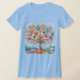 Camiseta de mulheres azuis com árvore de corações.