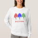 Camiseta de Natal para mulheres com árvores cintilantes coloridas em vermelho, azul e verde. O Tee também tem as palavras permanentes "Feliz Natal". Obrigados para a Creative Fabrica para alguns dos elementos na design.