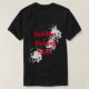 Esta camiseta de férias masculina é mostrada em preto com um pescoço de tripulação e mangas curtas e é mostrada com um design de texto ousado e marcas de esboço brancas como se fossem manchas de farinha. Mostrado em vermelho, branco e preto. Personalizar ou comprar como está.