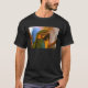 A Camiseta negra deste homem apresenta um belo papagaio-maxila.