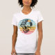 Camiseta de rosto feminino. Fundo colorido retrorativo, perfeito para uso diário. Para mulheres que gostam de estilo livre.