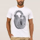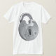 Um cadeado é uma boa maneira de manter algo seguro e esta design é de um cadeado de aparência realmente segura. Este cadeado de cinza metálica é operado por uma chave e tem um mecanismo de aparência forte. Este design de cadeado parece excelente nesta camiseta masculina. Perfeito para si mesmo ou como presente