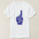 Criar um presente personalizado divertimento para seu fã de esportes favorito. Este t-shirt está pronto para que você personalize com seu próprio nome. Caracteriza uma ilustração de um dedo da espuma do estilo do fã de esportes em azul e em branco.
