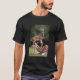 Esta design de camiseta única apresenta uma cena divertida com um veado de pé graciosamente com suas pernas assentando no pescoço de uma girafa sentada. É uma representação encantadora da amizade no reino animal, acrescentando um toque caprichoso ao seu guarda-roupa casual.