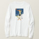 Um design para esquiadores, usando formas simples e cores fortes. Este design foi adaptado de um poster de viagens dos anos 20 do vintage que mostra um esquiador à moda da mulher com um lenço de fluxo alaranjado brilhante que funde na brisa contra um céu azul brilhante. Está em esquis de madeira longos, com os emperramentos livres do salto; um único pólo de esqui é tudo que você precisa para este tipo de jogo! As palavras: Deixe-nos ir esqui! foram adicionados em uma pia batismal do estilo do vintage (estes podem ser removidos ou mudado se você desejo). Os trabalhos melhores em uma camisa branca, mas em você podem tentá-la em outras cores (ou em estilos) da camisa demasiado.