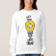 Esta camisola feminina tem uma design que mostra as palavras "Deixe sua luz brilhar" em uma impressão com letras pretas no estilo Marker, exibindo uma imagem gráfica de lâmpada amarela e um ícone de cruz branca no centro com um contorno preto neste tema de citação de escritura baseado em fé. Esta camisola é feita de 100% de algodão esta camisa é ao mesmo tempo peluda e durável, o que faz com que uma combinação de excelentes tenha uma imagem correspondente menor no verso.