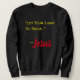 "Deixe Sua Luz Tão Brilhar..." Bíblia Verso, camisa de moletom. Esta é uma camisola preta. O nome de Jesus está escrito em vermelho na frente. "Deixe sua luz brilhar..." também está escrita em amarelo brilhante na frente. E "Deixe sua luz brilhar diante dos homens, para que eles vejam seus bons trabalhos, e glorifique seu pai que está no céu", e Matthew 5:16 (KJV) está escrito em letras amarelas brilhantes nas costas.