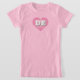 Esta t-shirt apresenta um coração cor-de-rosa com um centro lavado em branco que contém as letras maiúsculas, brancas e em negrito DE, a abreviatura oficial de Delaware, o primeiro estado.