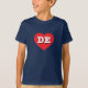 Esta t-shirt apresenta um coração vermelho vibrante contendo as letras maiúsculas, brancas e em negrito DE, a abreviatura oficial de Delaware, o primeiro estado.