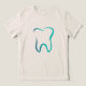 T-shirt com uma ilustração de um dente dentário. Desenhado com um contorno de gradiente verde.