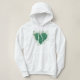 Pessoas falam sobre ter um polegar verde, talvez algumas pessoas tenham um coração verde. Um coração é formado por um arranjo intrincado de folhas verdes e tendões, criando um padrão exuberante, orgânico.