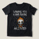 Entra no espírito assustador com esta camiseta esquelética divertida, estilo chibi! Apresentando um design de vetor fofo de um esqueleto, esta divertida e peculiar árvore é perfeita para os entusiastas do Halloween. O esqueleto é desenhado em um adorável estilo de arte em chibi, com olhos superdimensionados e um sorriso malicioso. Ao lado do slogan, "Desejando-lhe um Halloween cabeleireiro", esta camisa é uma mistura de fantasia e charme. Quer você esteja se vestindo para a temporada ou apenas ame as vibrações do Halloween, esta camiseta certamente adiciona um toque de diversão ao seu guarda-roupa.