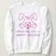 Fique confortável e festivo com esta Páscoa adorável! Apresentando uma linda cabeça de coelho ilustrada e a mensagem alegre "Desejando a Você Um Felz pascoa", esta camisola confortável e na moda é perfeita para caçadas de ovos, encontros familiares ou simplesmente para celebrar a temporada em estilo. Uma obrigação para amantes de Páscoa!