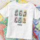 Esta camiseta personalizada para meninas apresenta um conjunto de desenhos de unicórnio esboçados em um estilo caprichoso e lúdico com expressões alegres contra fundos coloridos pastel.