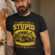 Um gráfico amarelo impressionante mostra um reboque vintage ao lado da frase humorística sobre como consertar a teimosia. Esta peça artística combina letras ousadas com detalhes intrincados do caminhão, apelando a amantes de caminhões, entusiastas do humor, e qualquer um com amor por afirmações inteligentes. Eu não consigo consertar o estúpido