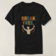 Uma ilustração poderosa e motivacional que apresenta o texto ousado e multicolorido "BREAK FREE." no topo. Abaixo do texto encontra-se uma figura estilizada de uma pessoa que está a sair de cadeias vermelhas, simbolizando a libertação, o empoderamento e a ultrapassar as limitações. A paleta de cores vibrante e a design texturizada dão-lhe uma aparência dinâmica e inspiradora — perfeita para impressões de camisetas, posters ou campanhas sociais focadas na liberdade, força mental ou crescimento pessoal.