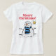 Camisa de Natal. Design de boneco de neve de Natal com a mensagem "Feliz Natal". Design apresenta um boneco de neve num cenário de inverno.