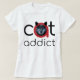 Linda ilustração "Gato Viciado". A cabeça do gato numa letra "A" vermelha é muito original. O gato é preto e tem olhos azuis-claros. O texto é definido em uma tipografia de tendência negra. Melhor para roupa de cor clara. Temos o mesmo design com cores vermelhas e brancas para roupas escuras. © Pascal Alexandre.