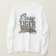 Um gráfico estilizado com a frase "Tigre Fácil" em tipografia ousada e lúdica. O design inclui um tigre majestoso que sobe no fundo, colorido em tons de laranja e branco com listras pretas. Ao redor do texto e do tigre estão sotaques de ouro, acrescentando um toque brilhante e elegante. A vibração geral é relaxada, mas confiante, misturando sofisticação com um charme de espera.