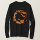 Formas velhas e incomuns formam um design de arte laranja brilhante que sugere uma coroa. Foto aqui em uma t-shirt preta, de manga longa, com diferentes estilos e cores disponíveis. Trata-se de uma adição legal, bonito e contemporânea à sua roupa casual e diária (seja para trabalho/escola, esporte/lazer, relaxamento/socialização ou apenas para fazer tarefas). Esta camisa de "arte arável" pode iluminar a monotonia de vestir para nosso mundo mais casualmente cansado, e contribui para um sentimento de estilo personalizado.