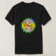 T-shirt de design personalizado com imagens à frente e atrás.
