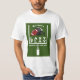 Camisa de despedida de solteiro com tema de futebol americano verde e branco com field goal, capacete e bola. Personalize com o nome do noivo.