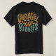 Um design de camiseta vibrante com o texto "Desvendar seus Riddles" em um gradiente ousado e multicolorido. Cada letra é uma cor diferente, criando um olhar dinâmico e atraente.