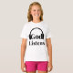 A camiseta desta menina mostra as palavras "Deus escuta" em um impressão ousado com letras negras mostrando um conjunto de fones de ouvido sobre a frase que Deus escuta neste estilo e tema baseado na fé. Esta camisa apresenta um ajustado relaxado para a forma feminina feita a partir de 100% de algodão esta camisa é durável e macia que faz uma combinação de excelentes.