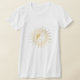 Uma ilustração reveladora do rosto de uma garota cercada por raios solares cria um design elegante nesta camiseta na moda. Ilustração e design © 1201AM Design Studio | www.1201am.com