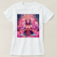 "Deusa Lakshmi Tee - Uma representação serena da deusa hindu da abundância, sentada num vibrante lótus cor-de-rosa com as mãos em oração. Vestida de azul real com sotaques de ouro e uma coroa indonésia, ela irradia paz e prosperidade. Colocada contra um pano de fundo macio com luz rosa brilhante, esta design combina beleza, compaixão e feminilidade divina."