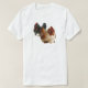 Une image drôle sur un tee-shirt, une poule brune menaçante couve son oeuf, idem pour une poule en noir à l'arrière plan. Bienvenue à la ferme.