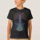 Um híbrido de guitarra/árvore elétrica com as pistas do crânio do Dia dos Mortos. Arte gráfica multicolorido em t-shirts, capuzes, cartas, presentes.