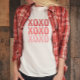 Camisa de Dia de os namorados XOXO rosa e vermelha.